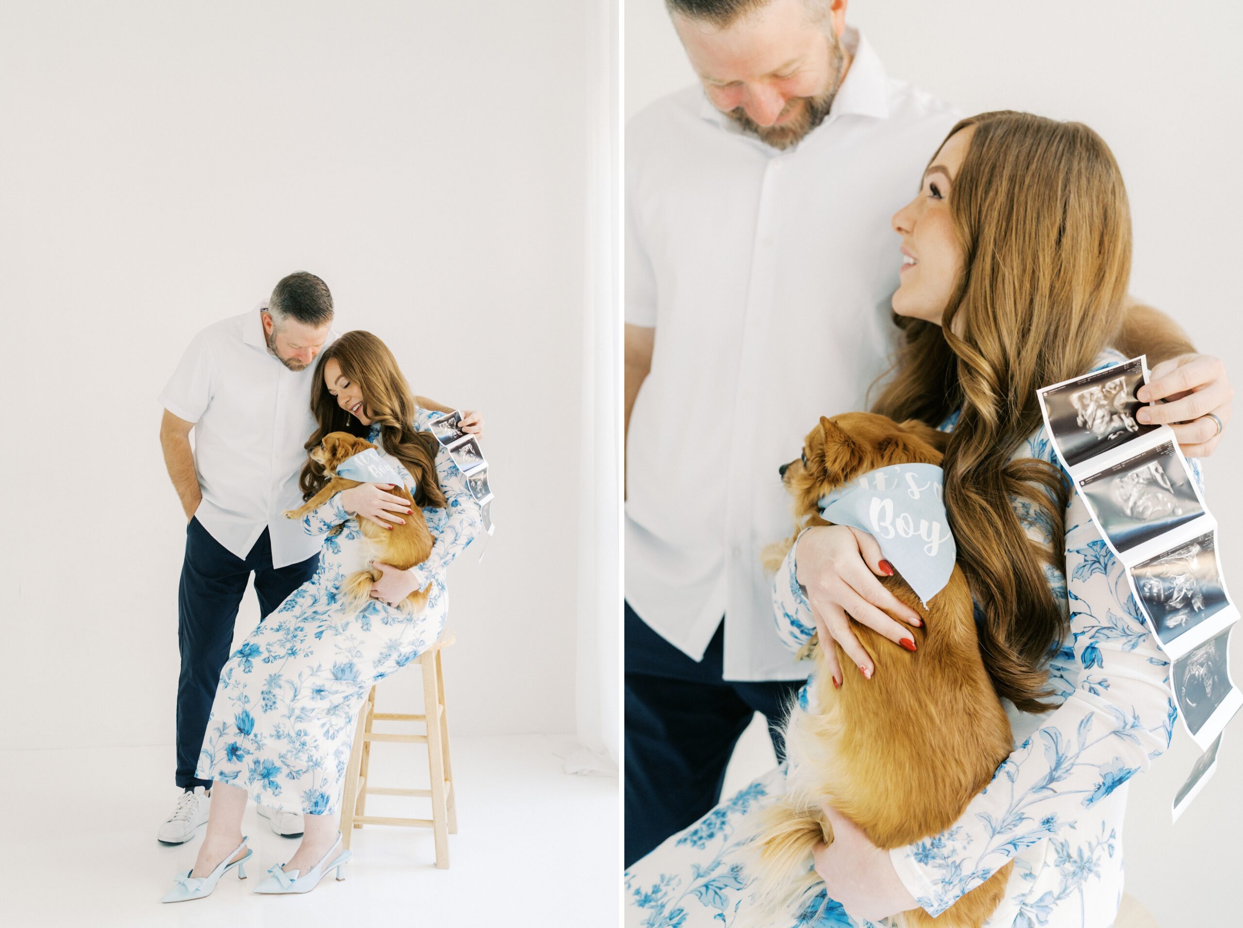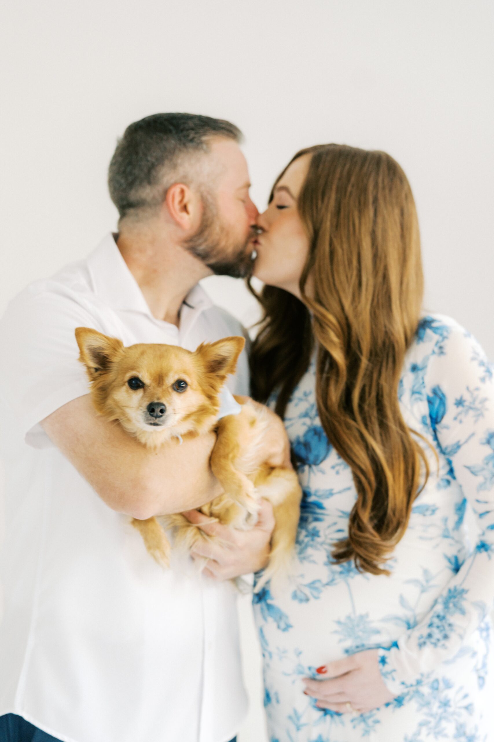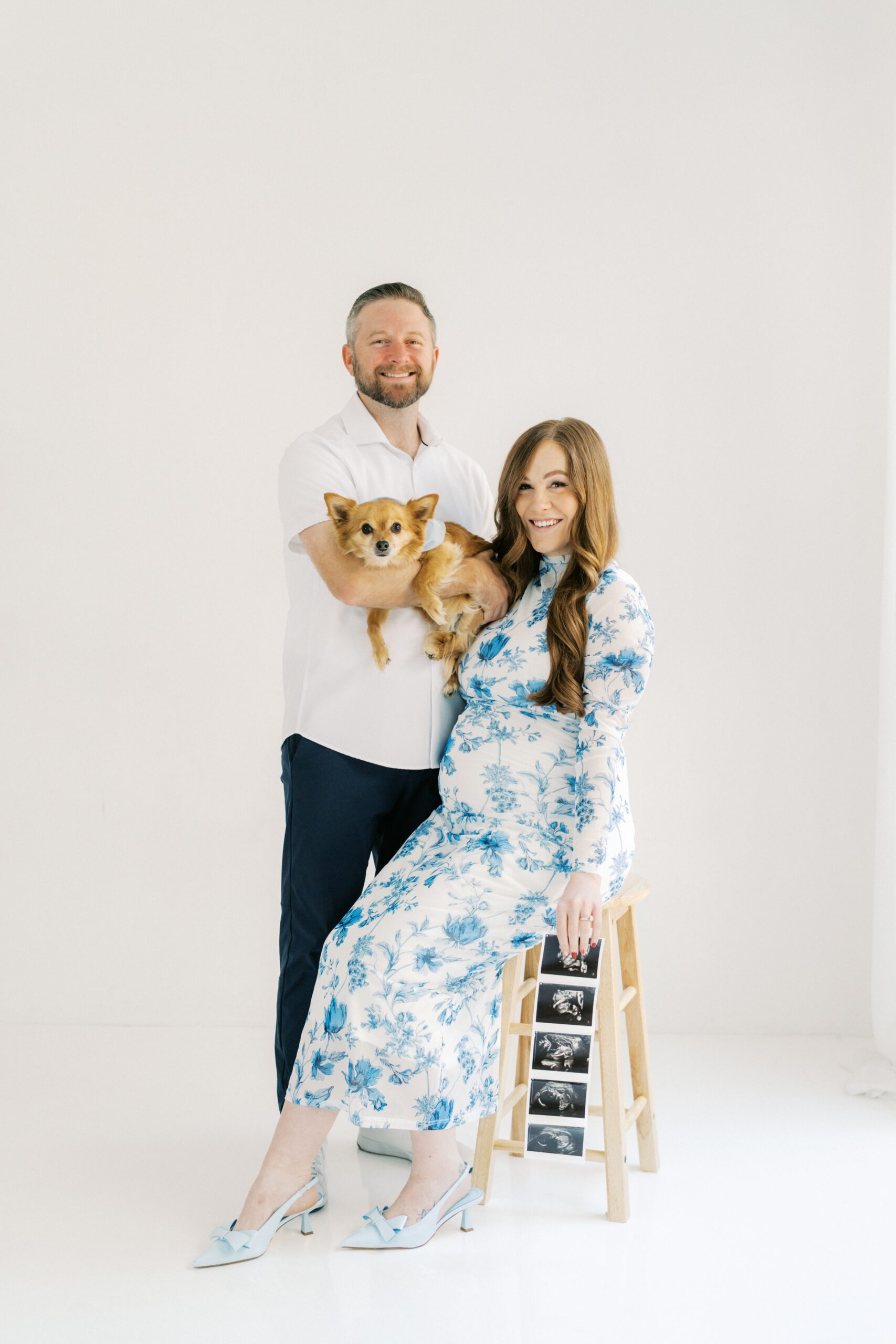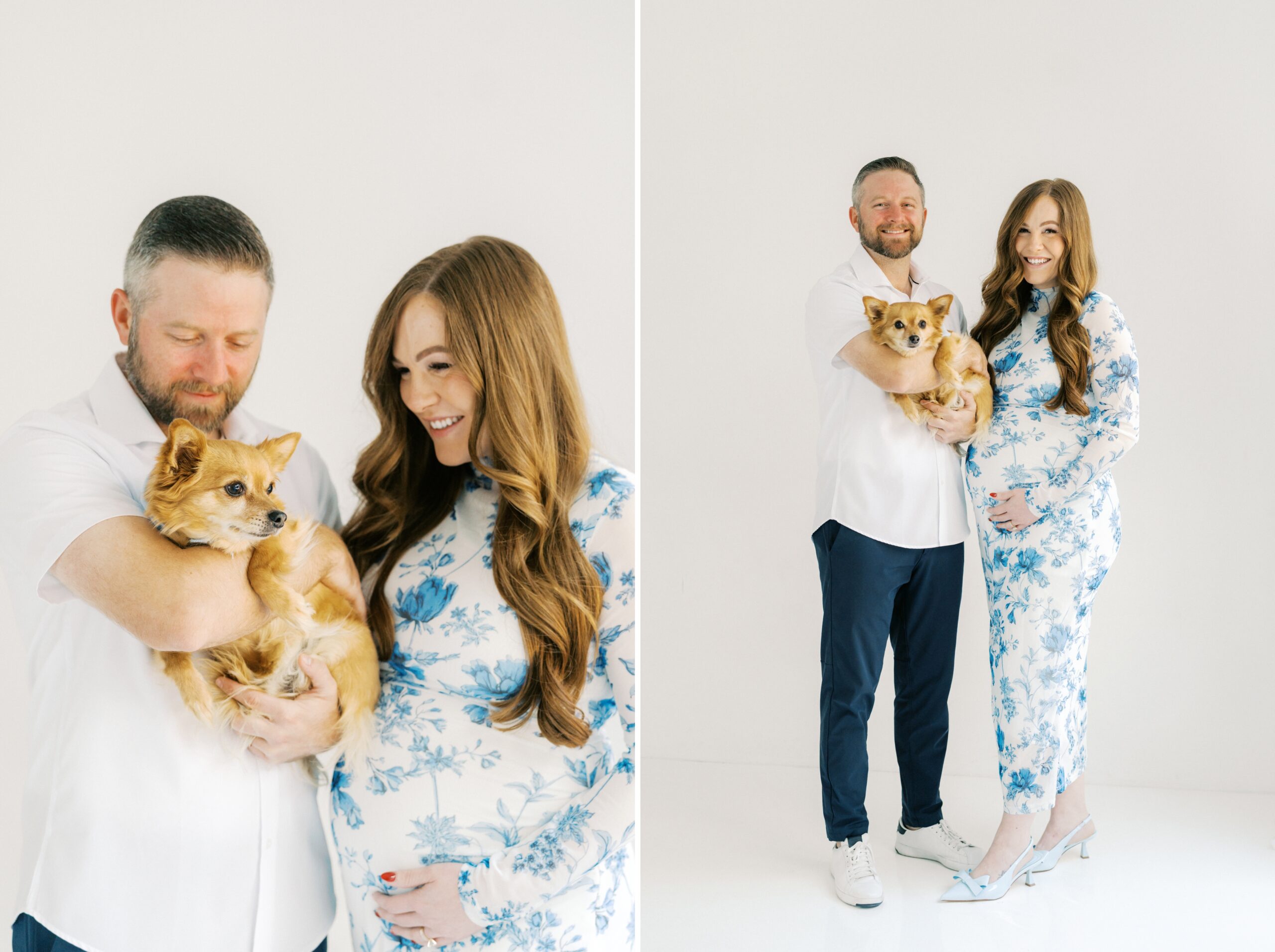 I cannot even begin to explain how excited I am to share the goodness from this studio maternity session with The Robinsons. From the moment I met Cici & Michael I knew we were going to have the best time. We settled on The Light Loft in Scottsdale, as they are pet friendly. Butters had to be included in on the session – non-negotiable!!