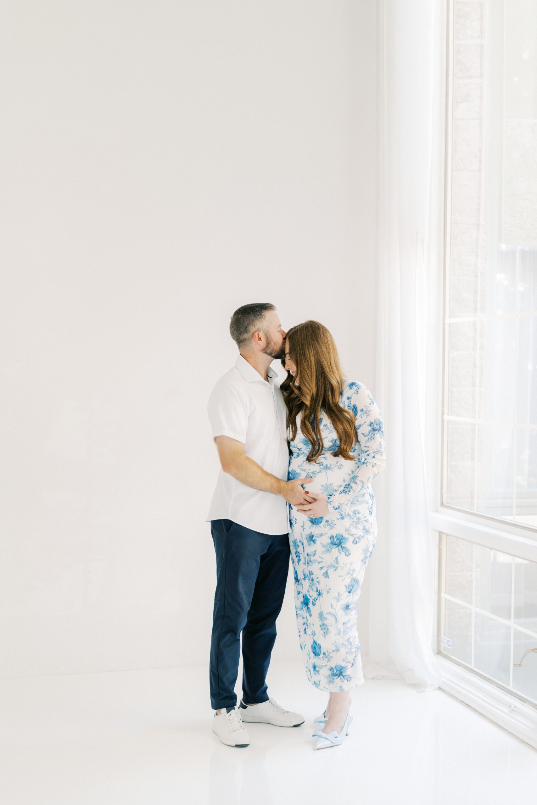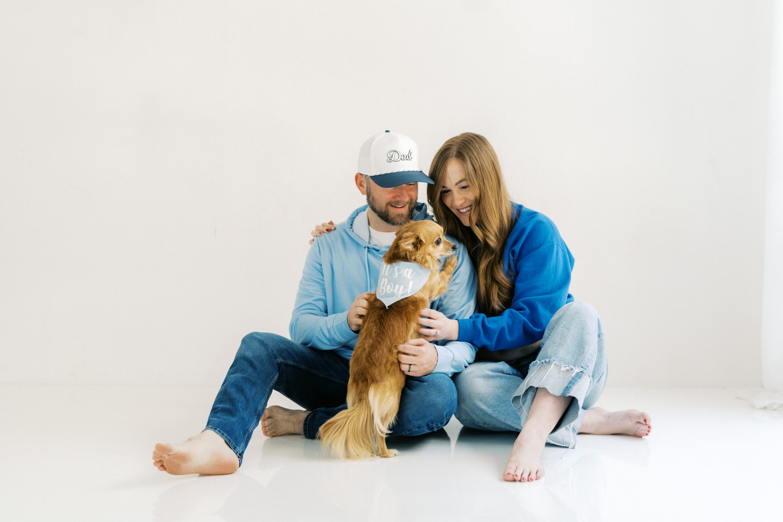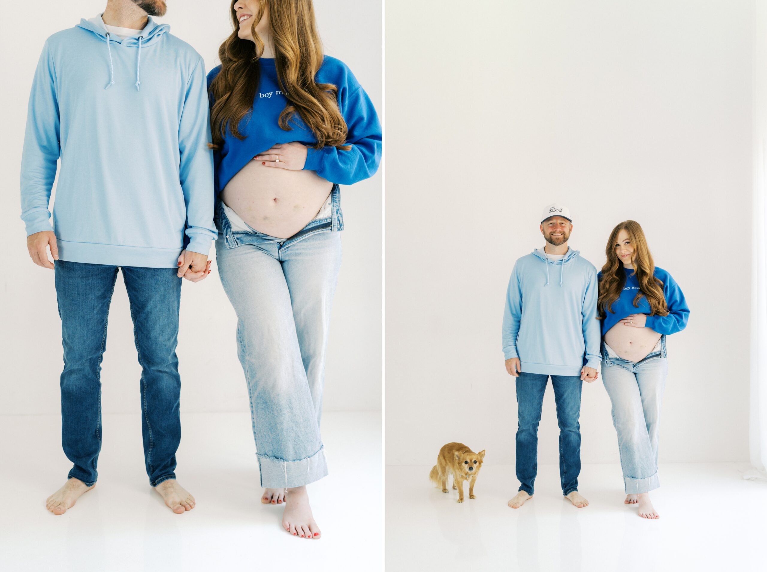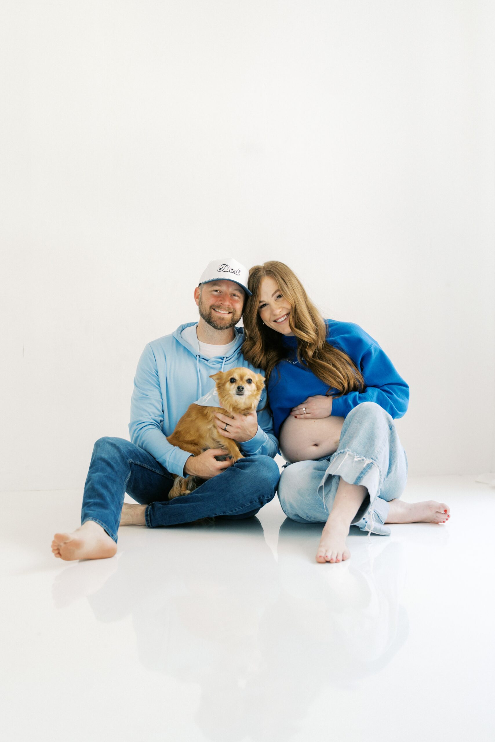 I cannot even begin to explain how excited I am to share the goodness from this studio maternity session with The Robinsons. From the moment I met Cici & Michael I knew we were going to have the best time. We settled on The Light Loft in Scottsdale, as they are pet friendly. Butters had to be included in on the session – non-negotiable!!