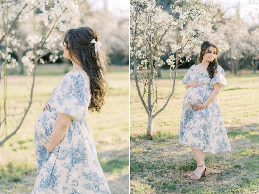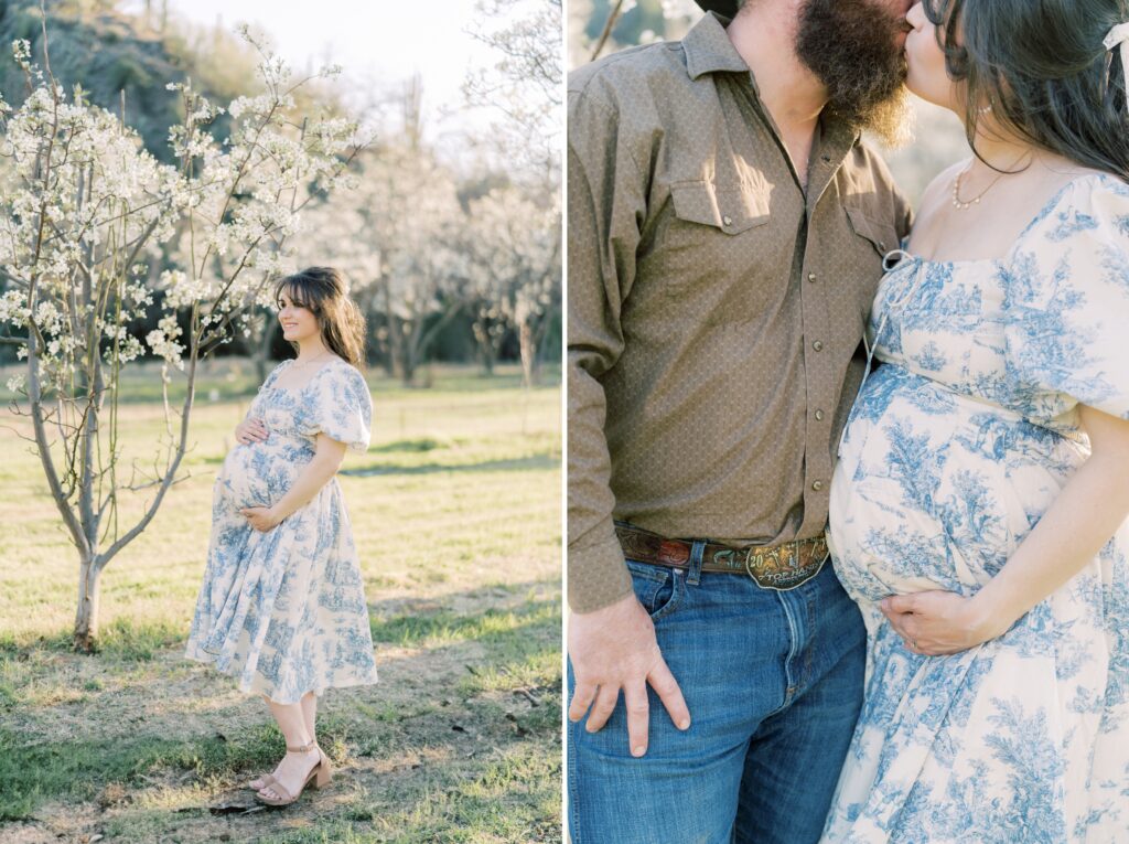 This cherry blossom maternity session is what dreams are made of for this desert dweller. Gorgeous blooms, green grass, and nearby mountains. We don’t always get the chance to shoot at locations like this in Arizona. But a short two hour drive up near Tucson and we landed at the most darling cherry blossom tree farm. Don’t get me wrong, the desert holds it’s own kind of beauty. But there is just something that sparkles in me when I get to capture your family memories in a new scenery. My creative juices really start to flow, it’s like a fresh new lens is put on!! This gallery brings me so much giddiness and I hope you love it as much as I do!